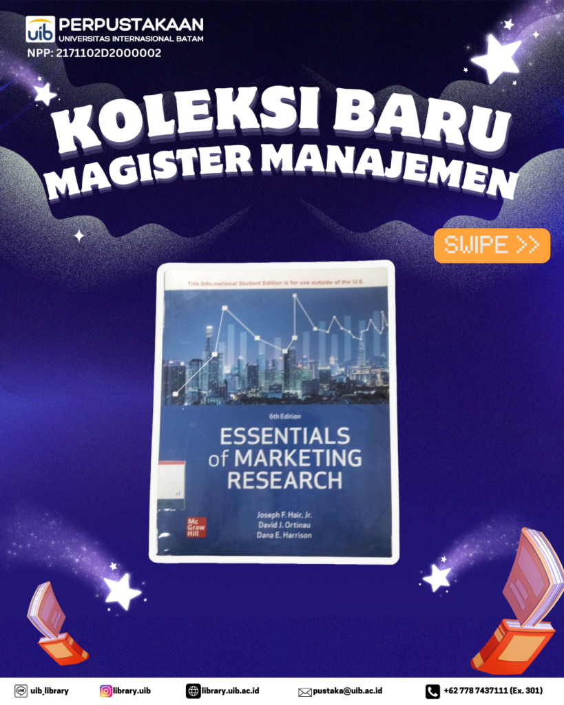 Perpustakaan UIB kembali menambah koleksi terbaru yang sangat relevan bagi mahasiswa di bidang bisnis, manajemen, dan pemasaran. Buku “Essentials of Marketing Research (6th Edition)” karya Joseph F. Hair Jr., David J. Ortinau, dan Dana E. Harrison hadir sebagai sumber literatur terkini yang membahas konsep, teknik, dan penerapan riset pemasaran secara komprehensif namun tetap mudah dipahami […]