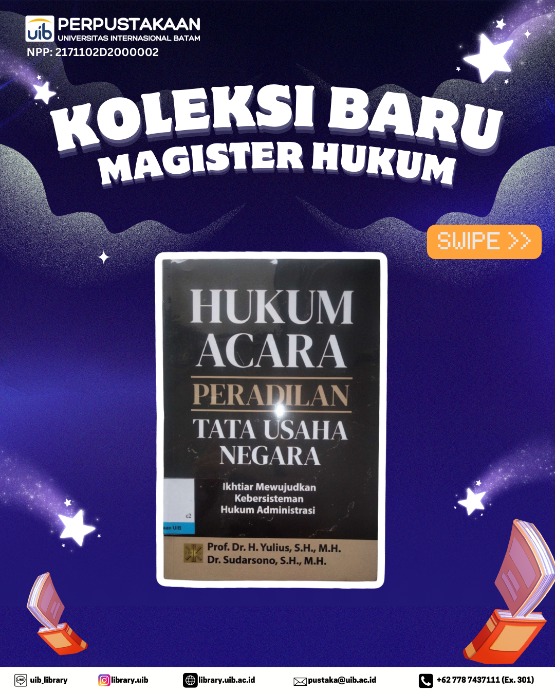 Perpustakaan dengan bangga menghadirkan salah satu referensi hukum administrasi dan peradilan yang sangat dibutuhkan oleh mahasiswa Magister Hukum, yaitu buku Hukum Acara Peradilan Tata Usaha Negara: Ikhtiar Mewujudkan Kebersisteman Hukum Administrasi. Buku ini menyajikan uraian mendalam mengenai praktik penyelesaian sengketa administrasi negara melalui Peradilan Tata Usaha Negara (PTUN).