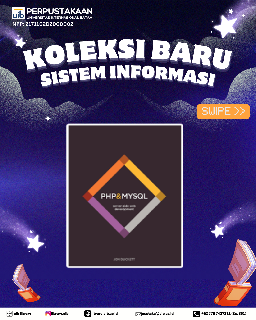 Perpustakaan UIB kembali menghadirkan koleksi terbaru yang sangat relevan di era digital saat ini, terutama bagi mahasiswa yang ingin menguasai dunia pengembangan web. Buku “PHP & MySQL: Server-Side Web Development” karya Jon Duckett menjadi salah satu referensi modern yang menawarkan cara belajar coding yang lebih menyenangkan, visual, terstruktur, dan mudah dipahami bagi pembaca dari semua tingkat kemampuan.