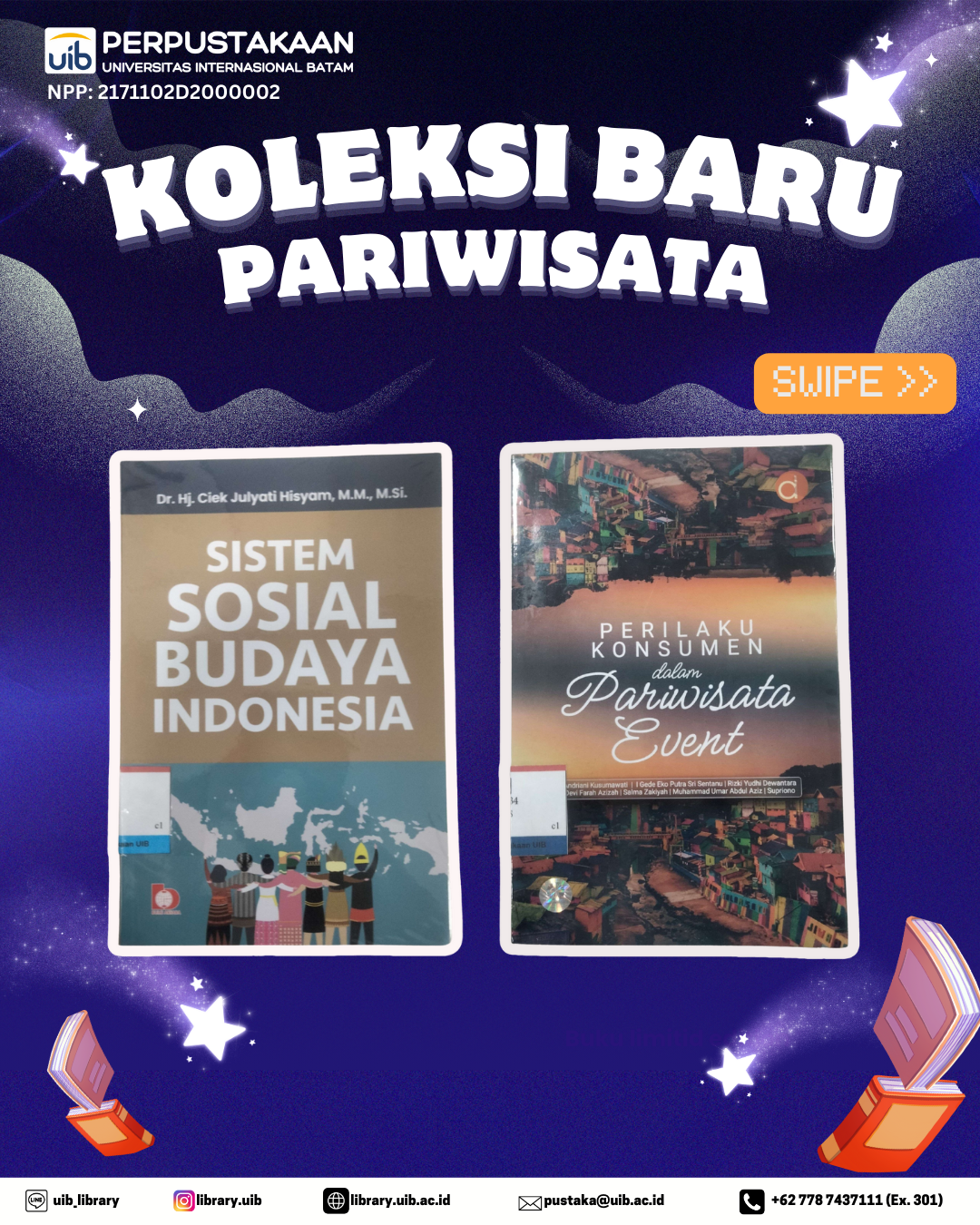 Perpustakaan Universitas Internasional Batam kembali menghadirkan dua koleksi terbaru yang relevan untuk mahasiswa berbagai program studi, khususnya di bidang pariwisata, sosial, dan budaya.