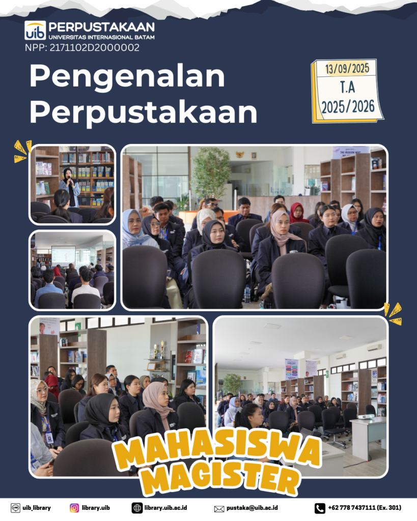 Batam, Sabtu (13/09/2025) – Perpustakaan Universitas Internasional Batam (UIB) melaksanakan kegiatan Pengenalan Akademik khusus bagi mahasiswa baru Program Magister Hukum dan Magister Manajemen Tahun Ajaran 2025/2026. Kegiatan ini bertujuan untuk memperkenalkan layanan, sarana, dan prasarana yang dimiliki perpustakaan, sehingga mahasiswa dapat memanfaatkannya secara optimal dalam mendukung proses pembelajaran maupun penelitian. Dalam sesi pengenalan tersebut, mahasiswa […]
